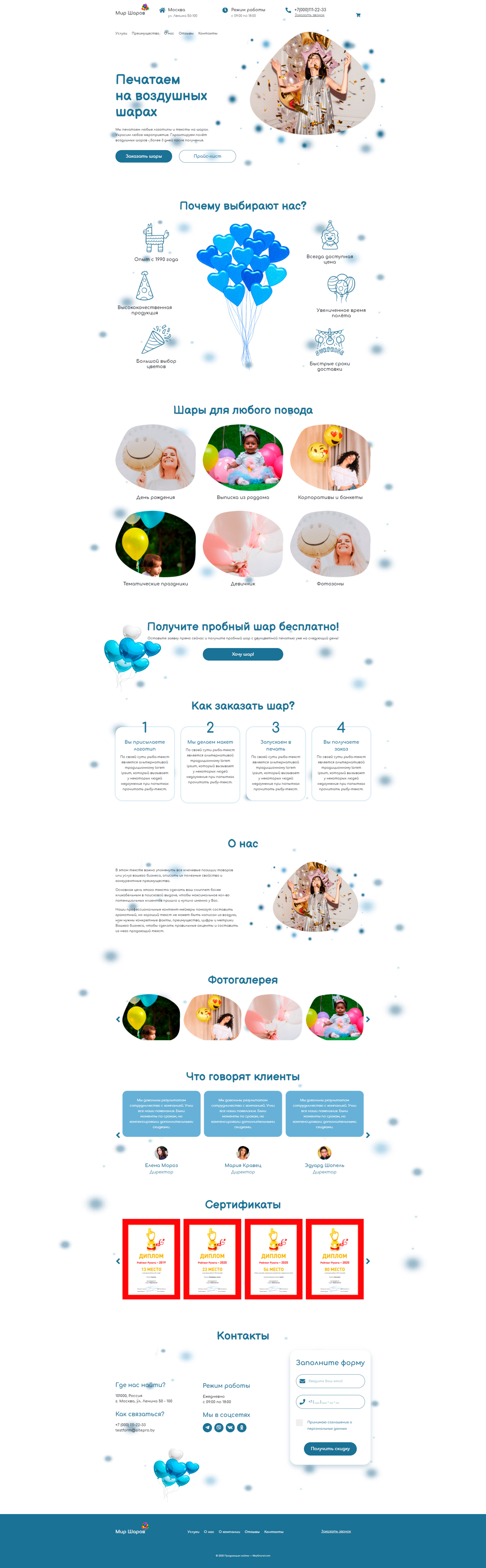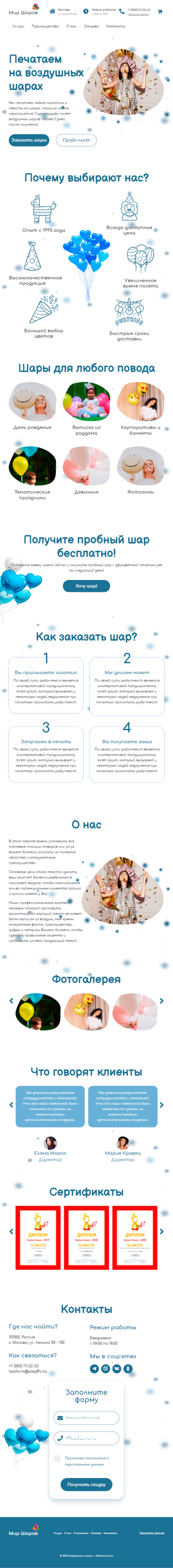 Закажите готовый продающий сайт лендинг #1826202 в Магадане за 1-3 дня «под ключ»: свёрстан, отрисован и готов к рекламе. Тематика шаблона «Печать на воздушных шарах».