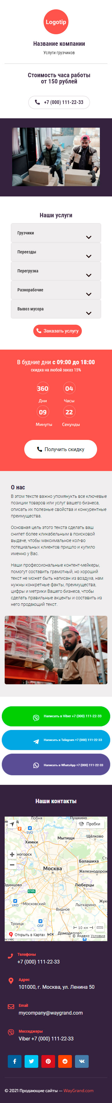 Закажите готовый продающий сайт визитка #2562101 в Магадане за 5-7 дня «под ключ»: свёрстан, отрисован и готов к рекламе. Тематика шаблона «Услуги грузчиков».