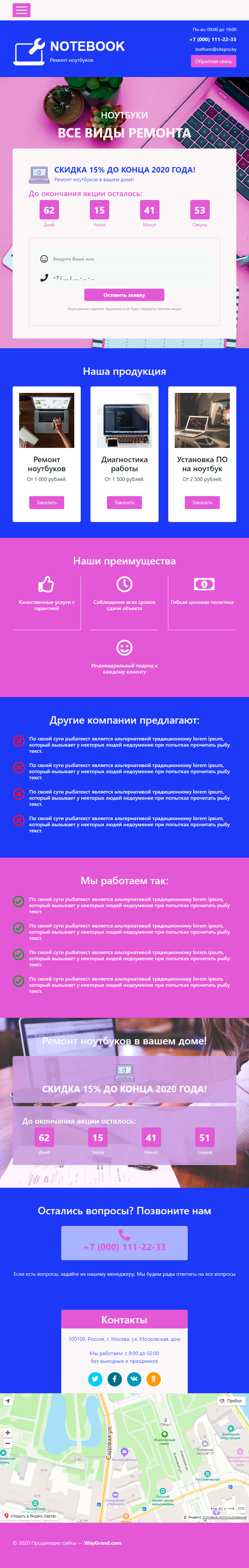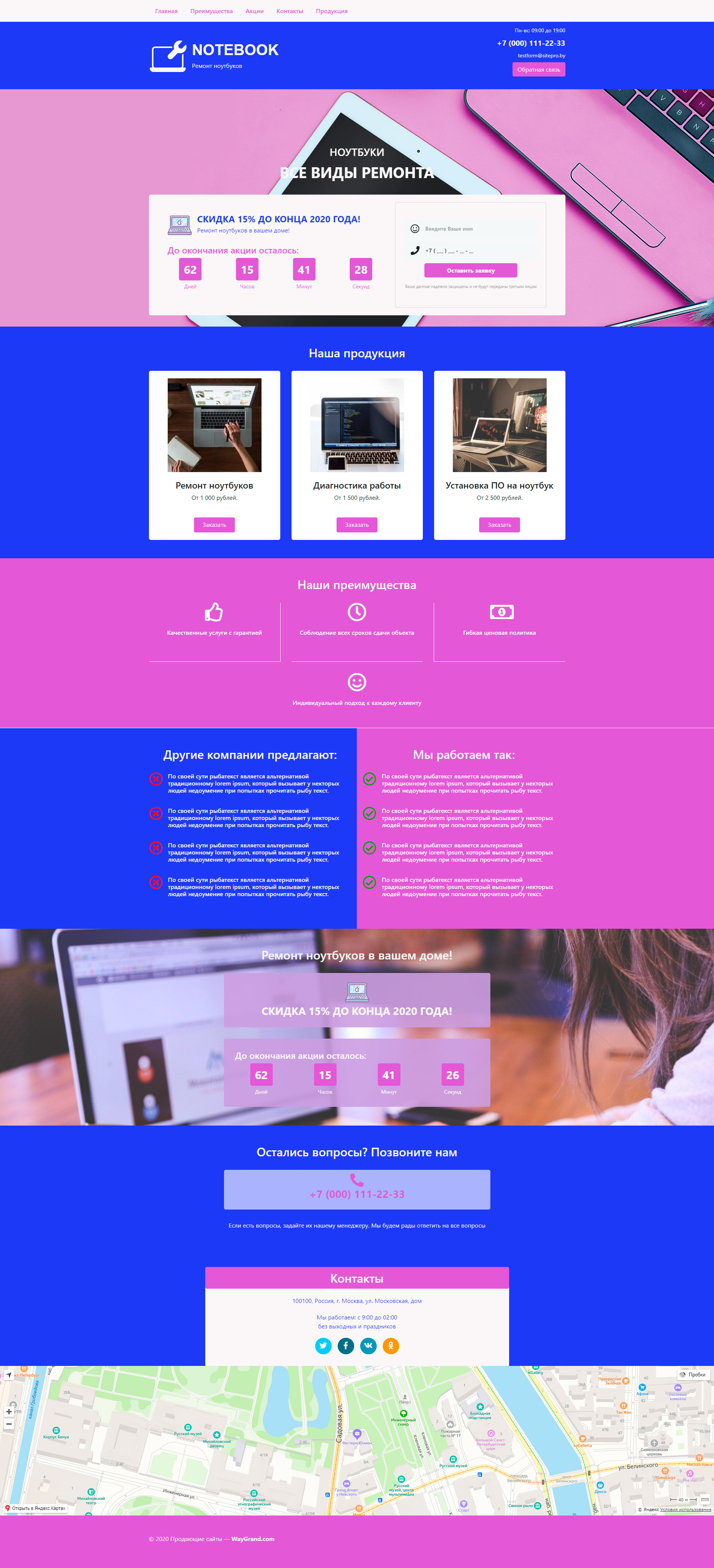 Закажите готовый продающий сайт лендинг #0719201 в Магадане за 1-3 дня «под ключ»: свёрстан, отрисован и готов к рекламе. Тематика шаблона «Ремонт ноутбуков».