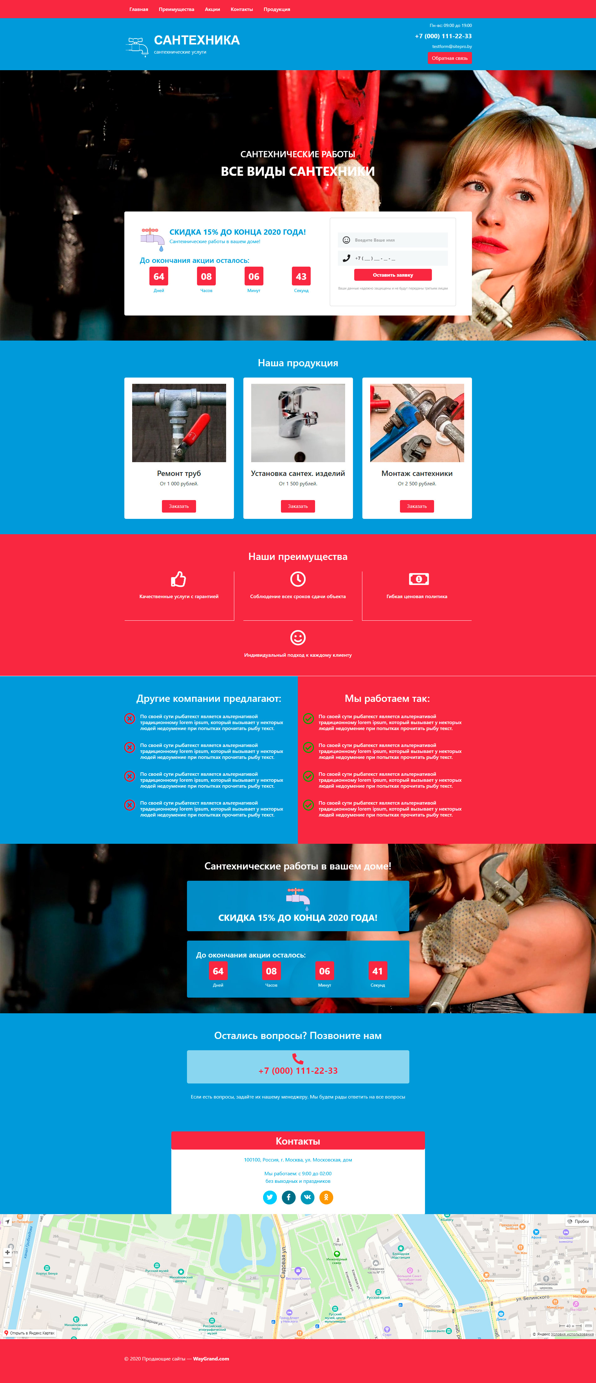 Закажите готовый продающий сайт лендинг #2158202 в Магадане за 1-3 дня «под ключ»: свёрстан, отрисован и готов к рекламе. Тематика шаблона «Сантехника».