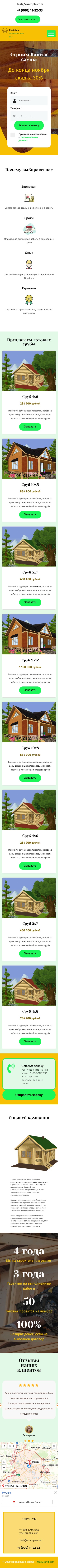 Закажите готовый продающий сайт лендинг #2172202 в Магадане за 1-3 дня «под ключ»: свёрстан, отрисован и готов к рекламе. Тематика шаблона «Строительство бань и саун».