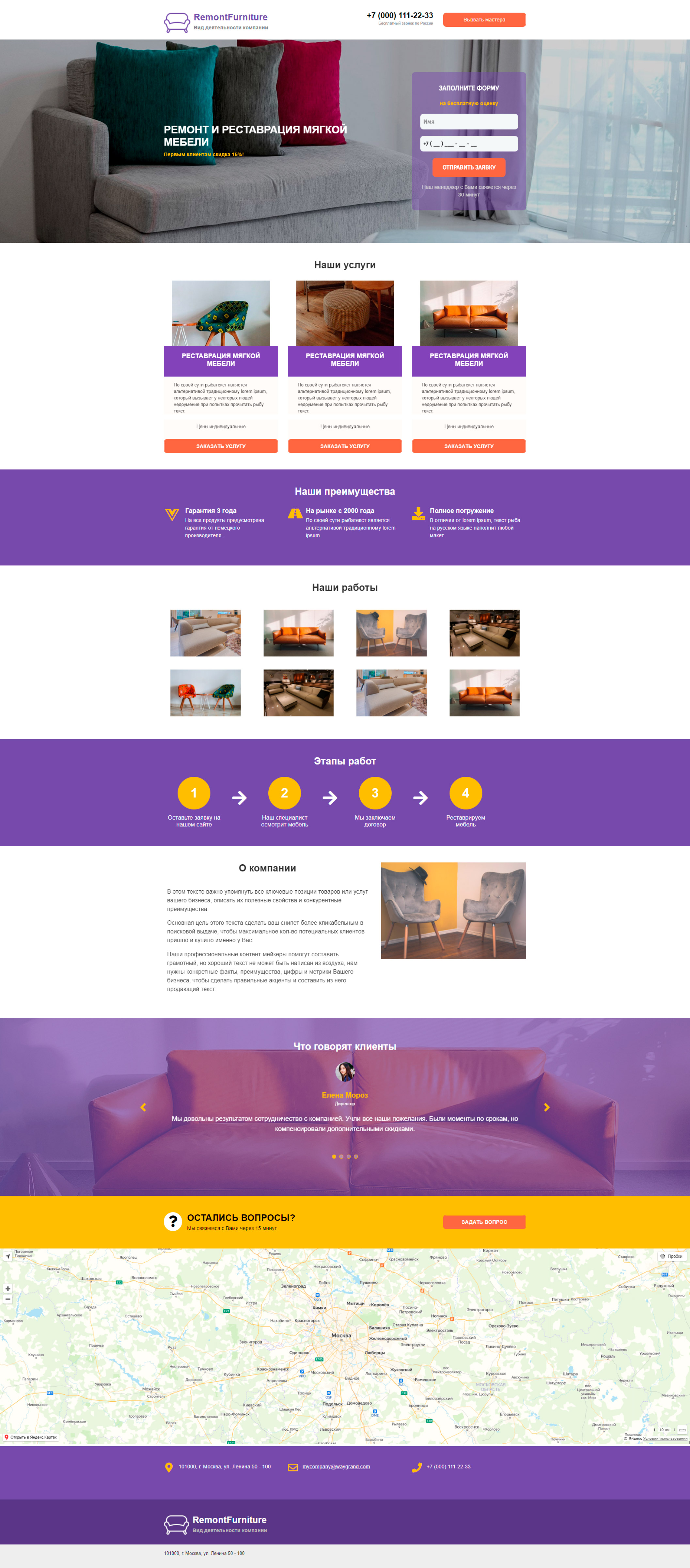 Закажите готовый продающий сайт лендинг #0924201 в Магадане за 1-3 дня «под ключ»: свёрстан, отрисован и готов к рекламе. Тематика шаблона «Ремонт и реставрация мебели».