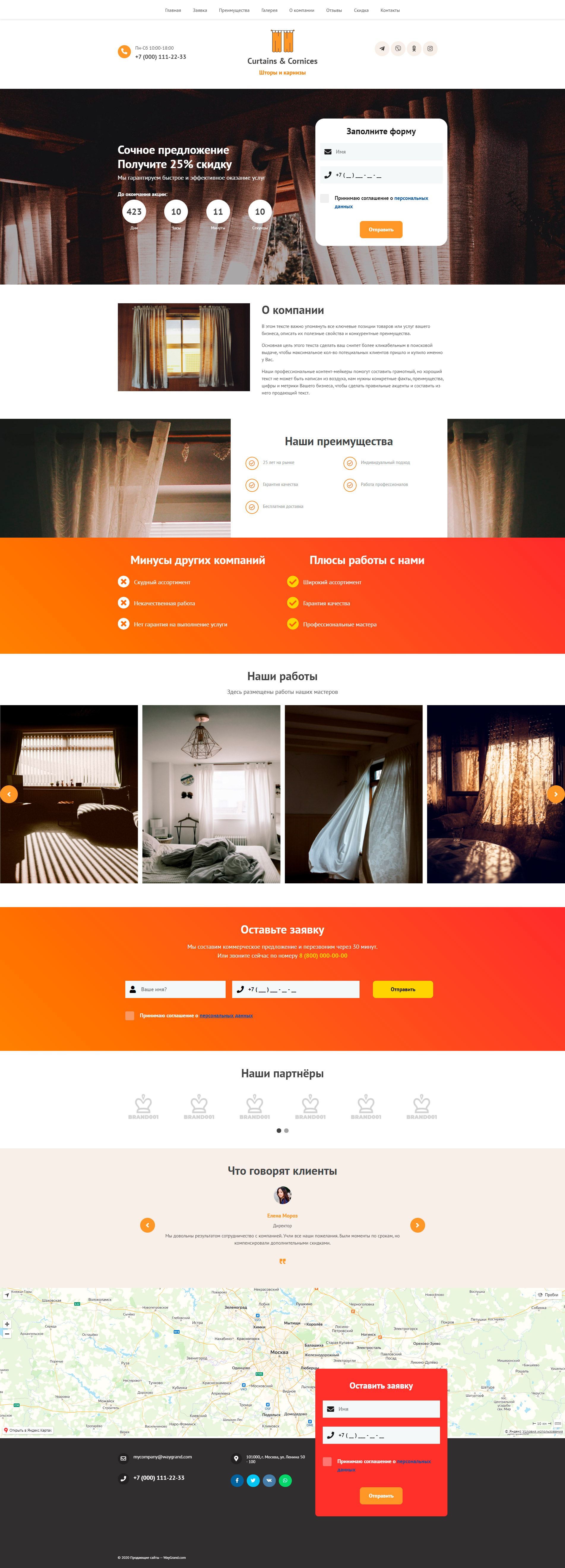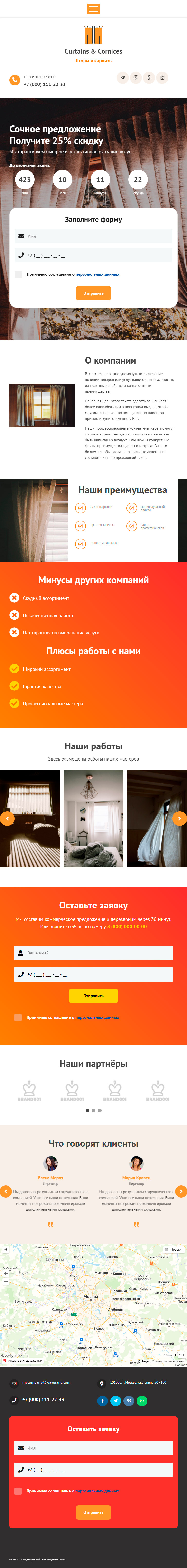 Закажите готовый продающий сайт лендинг #2209201 в Магадане за 1-3 дня «под ключ»: свёрстан, отрисован и готов к рекламе. Тематика шаблона «Карнизы и шторы».