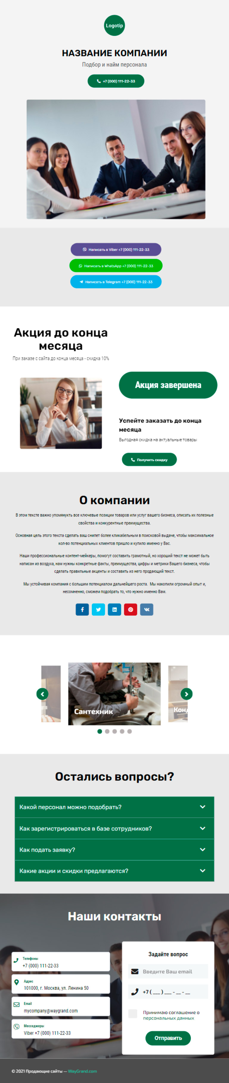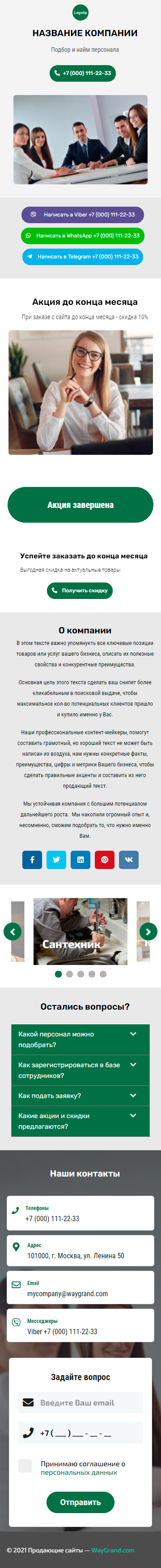 Закажите готовый продающий сайт визитка #1415101 в Магадане за 5-7 дня «под ключ»: свёрстан, отрисован и готов к рекламе. Тематика шаблона «Подбор и найм персонала».