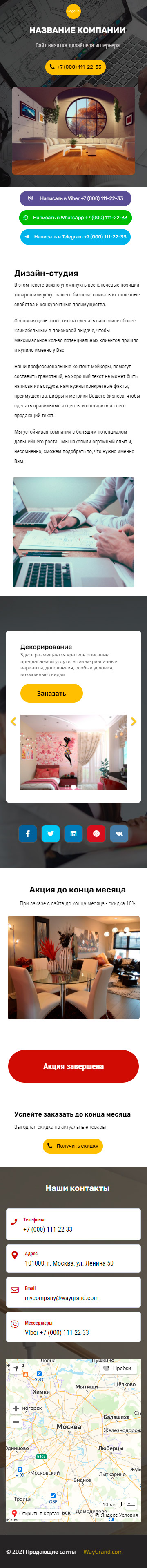 Закажите готовый продающий сайт визитка #2124101 в Магадане за 5-7 дня «под ключ»: свёрстан, отрисован и готов к рекламе. Тематика шаблона «Дизайн интерьеров».