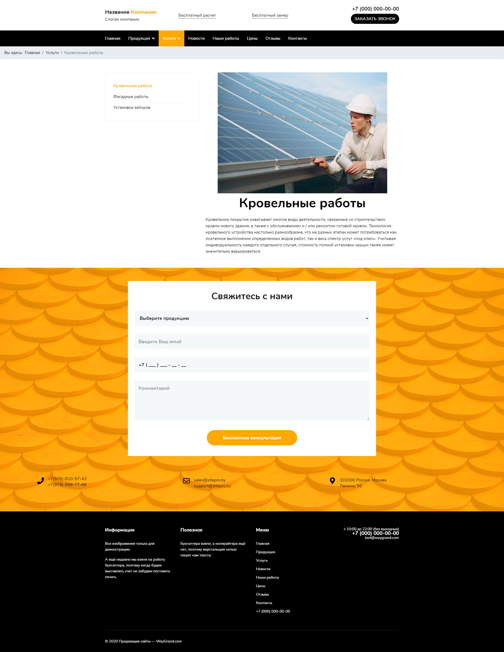 Закажите готовый продающий сайт визитка #2132301 в Магадане за 5-7 дня «под ключ»: свёрстан, отрисован и готов к рекламе. Тематика шаблона «Заборы, кровля, фасады».