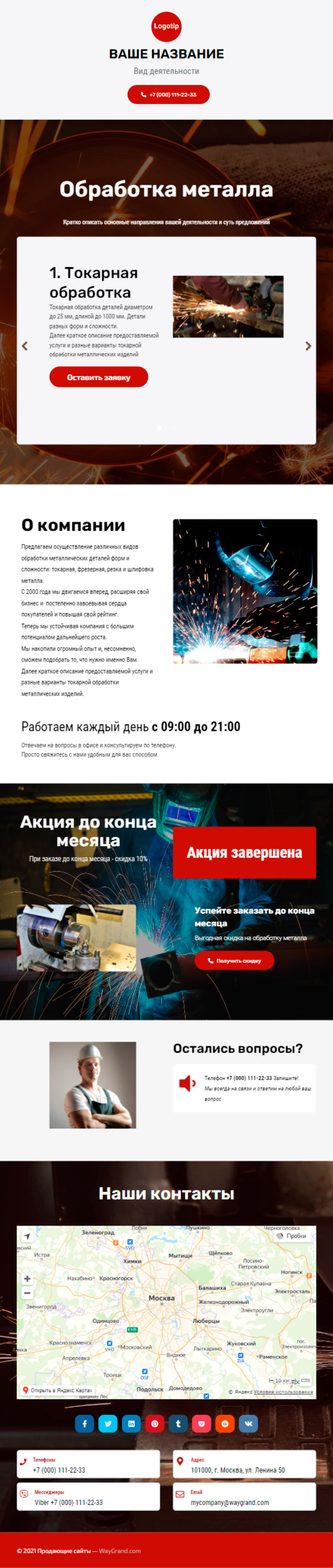 Закажите готовый продающий сайт визитка #1209101 в Магадане за 5-7 дня «под ключ»: свёрстан, отрисован и готов к рекламе. Тематика шаблона «Обработка металла».