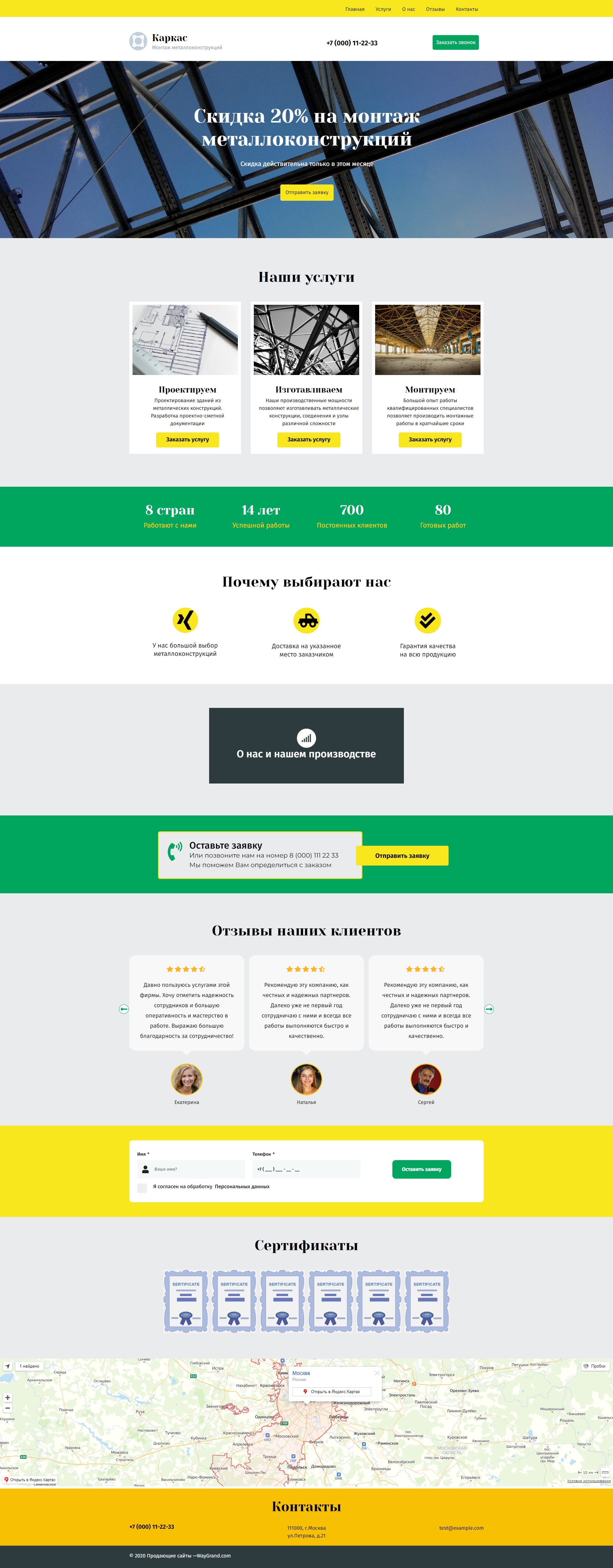 Закажите готовый продающий сайт лендинг #2027201 в Магадане за 1-3 дня «под ключ»: свёрстан, отрисован и готов к рекламе. Тематика шаблона «Металлоконструкции».