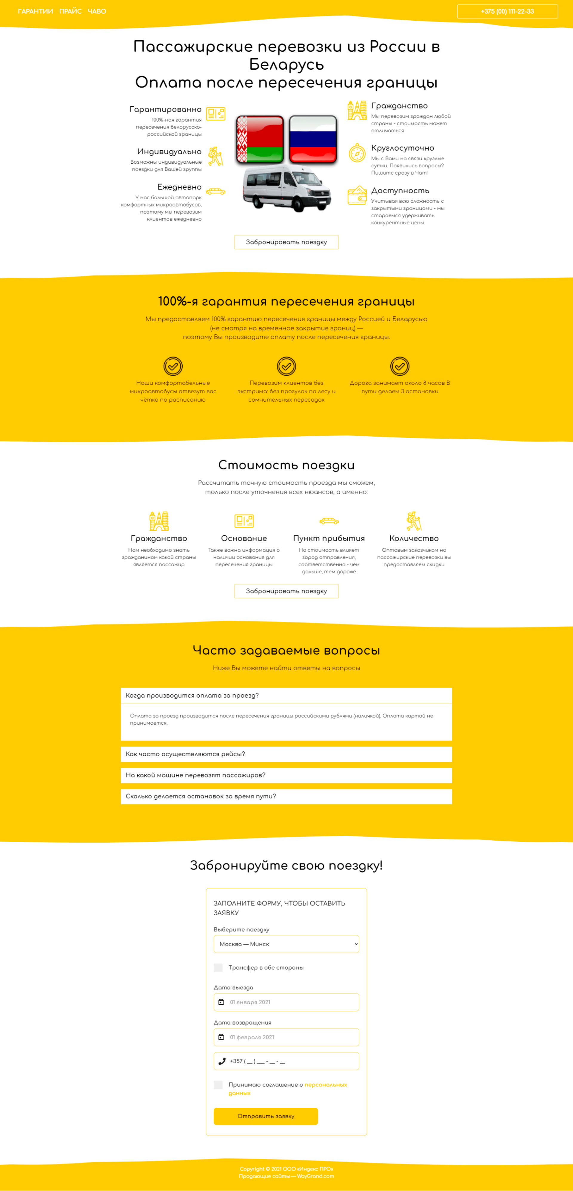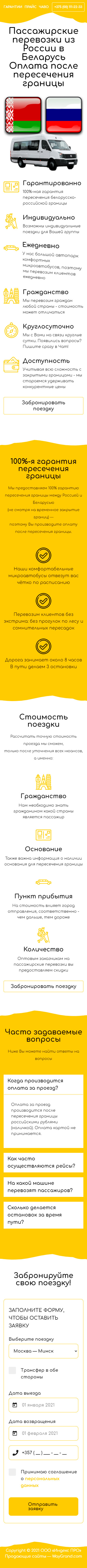 Закажите готовый продающий сайт лендинг #2528203 в Магадане за 1-3 дня «под ключ»: свёрстан, отрисован и готов к рекламе. Тематика шаблона «Пассажирские перевозки из России в Беларусь».