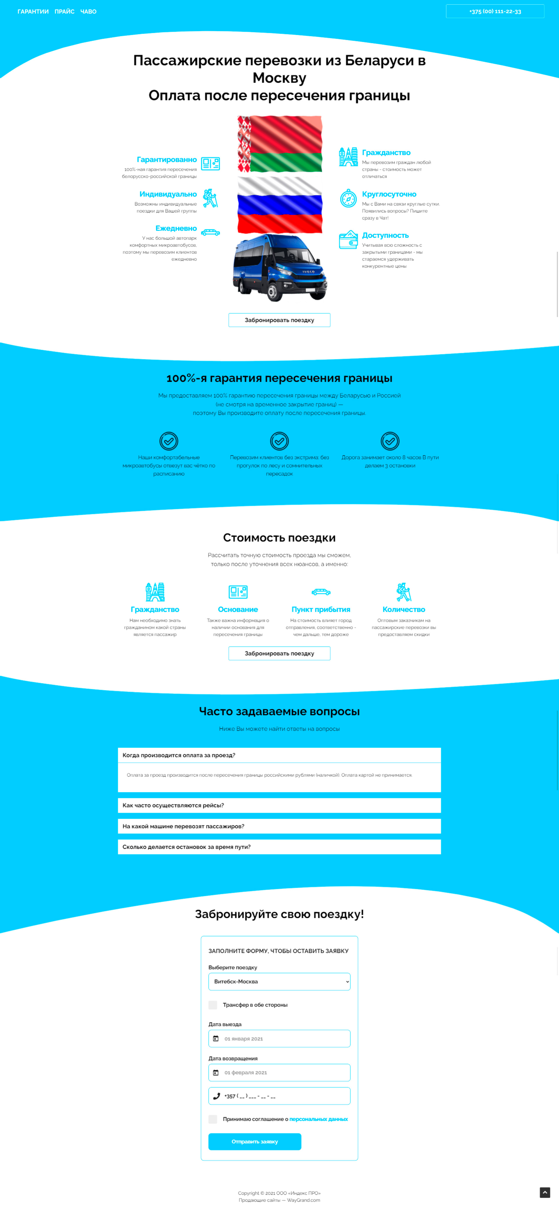 Закажите готовый продающий сайт лендинг #2528204 в Магадане за 1-3 дня «под ключ»: свёрстан, отрисован и готов к рекламе. Тематика шаблона «Пассажирские перевозки из Беларуси в Москву».