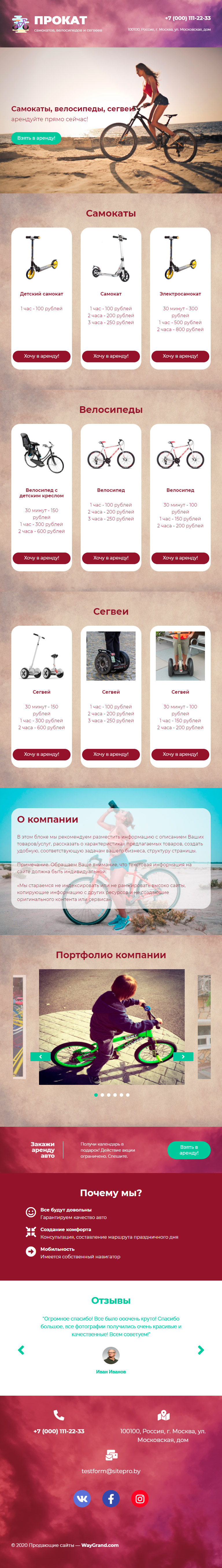 Закажите готовый продающий сайт лендинг #1907201 в Магадане за 1-3 дня «под ключ»: свёрстан, отрисован и готов к рекламе. Тематика шаблона «Прокат самокатов и велосипедов».