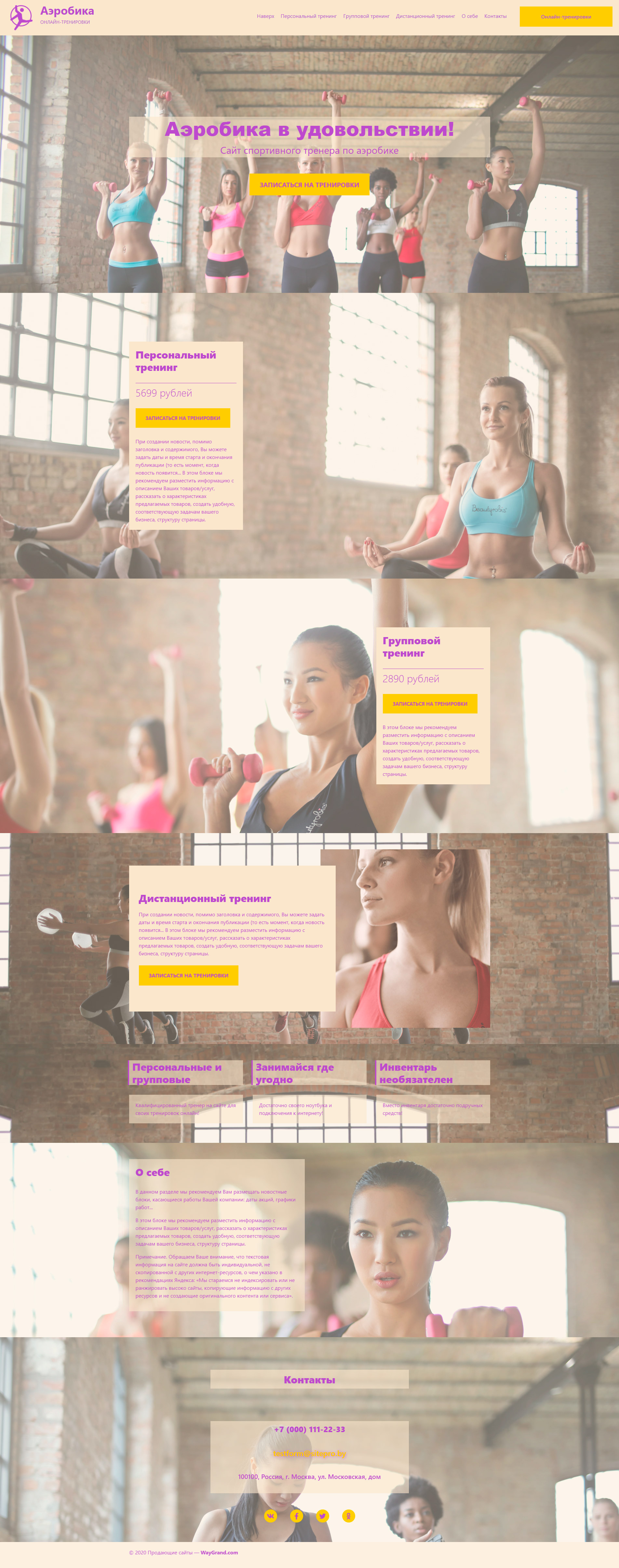 Закажите готовый продающий сайт лендинг #1955207 в Магадане за 1-3 дня «под ключ»: свёрстан, отрисован и готов к рекламе. Тематика шаблона «Аэробика онлайн тренировки».