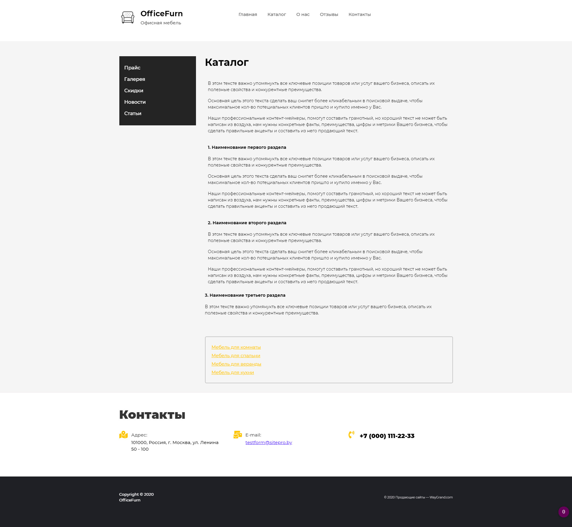 Закажите готовый продающий сайт визитка #0921301 в Магадане за 5-7 дня «под ключ»: свёрстан, отрисован и готов к рекламе. Тематика шаблона «Офисная мебель».