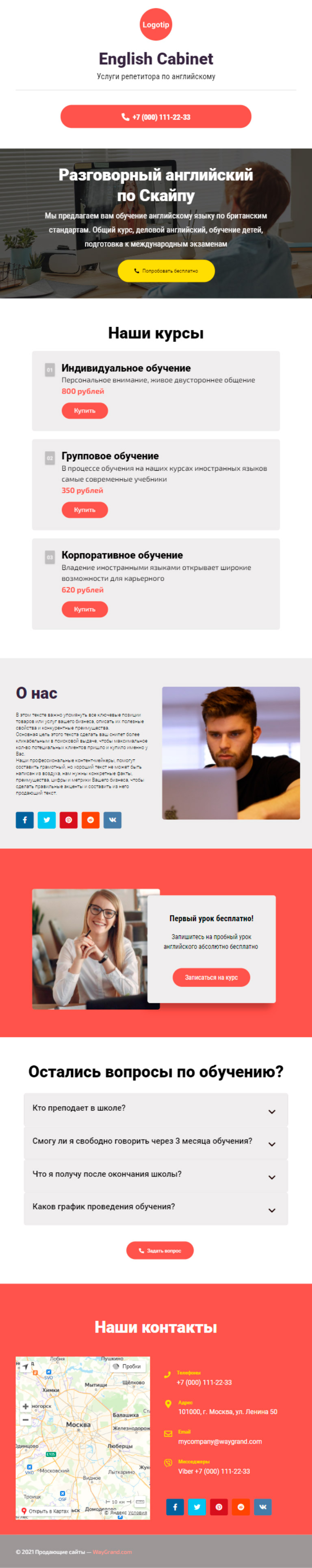 Закажите готовый продающий сайт визитка #1463101 в Магадане за 5-7 дня «под ключ»: свёрстан, отрисован и готов к рекламе. Тематика шаблона «Услуги репетитора по английскому».