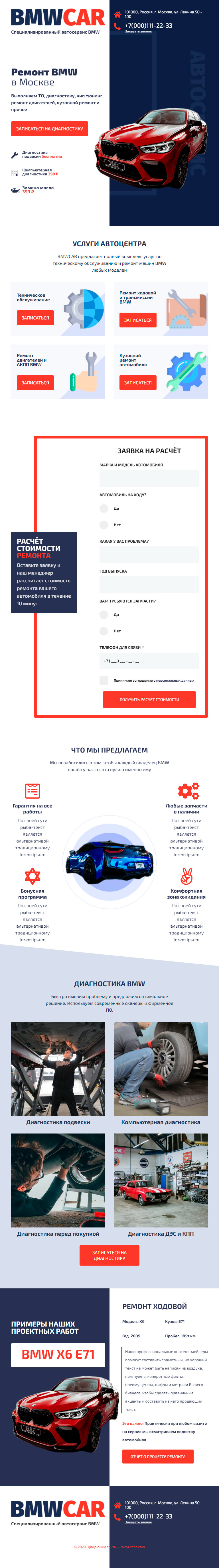 Закажите готовый продающий сайт лендинг #0210202 в Магадане за 1-3 дня «под ключ» по выгодным ценам на WayGrand: свёрстан, отрисован и готов к рекламе. Тематика шаблона «Ремонт BMW».