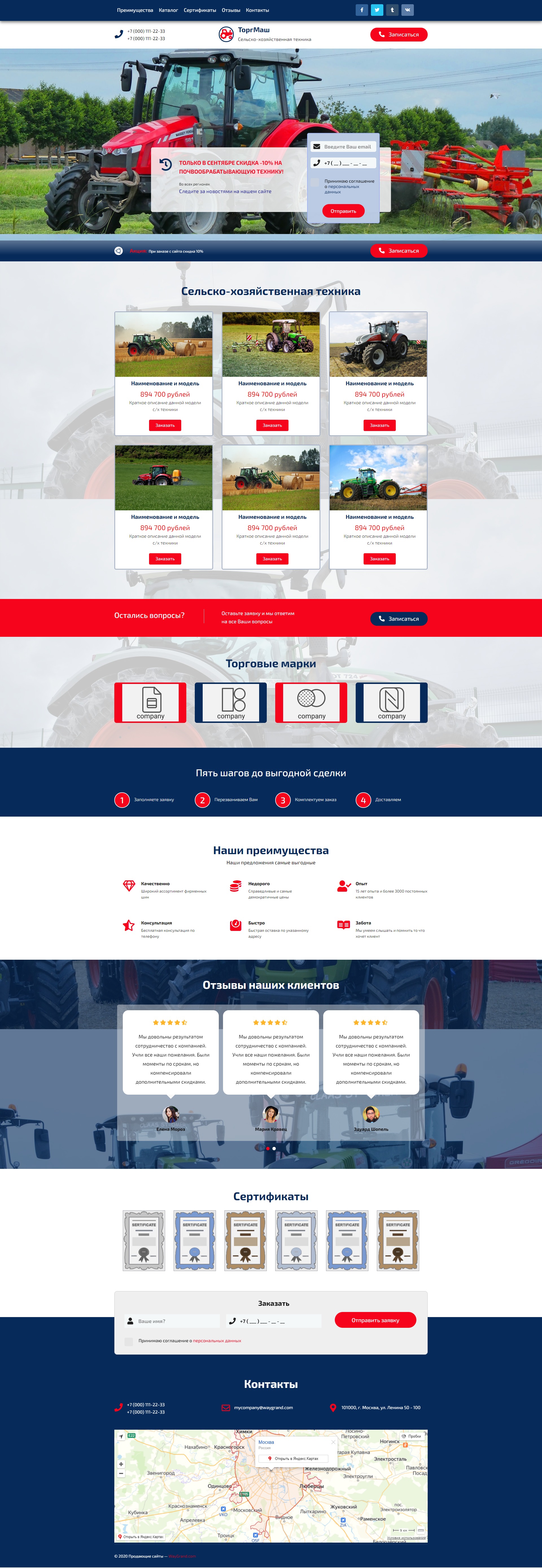 Закажите готовый продающий сайт лендинг #2553202 в Магадане за 1-3 дня «под ключ»: свёрстан, отрисован и готов к рекламе. Тематика шаблона «Сельско-хозяйственная техника».